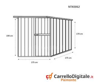 * Dimensioni esterne (incluso tetto): 1.75 m (Larghezza) x 1.85 m (Lunghezza) x