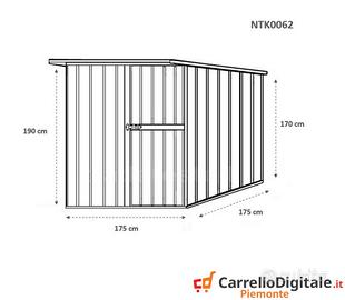 * Dimensioni esterne (incluso tetto): 1.75 m (Larghezza) x 1.85 m (Lunghezza) x