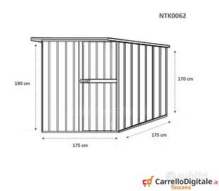 * Dimensioni esterne (incluso tetto): 1.75 m (Larghezza) x 1.85 m (Lunghezza) x