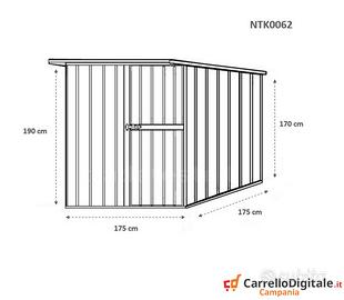 * Dimensioni esterne (incluso tetto): 1.75 m (Larghezza) x 1.85 m (Lunghezza) x