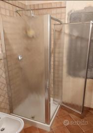 Box doccia acciaio vetro zigrinato. Due lati, uno fisso e uno apribile regolabile 85/90 per lato