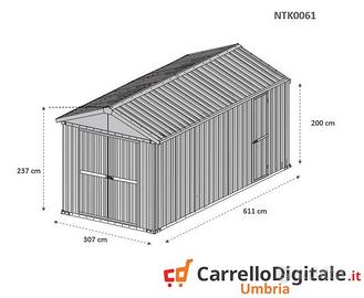 * Dimensioni esterne (incluso tetto): 3.27 m (Larghezza) x 6.11 m (Lunghezza) x