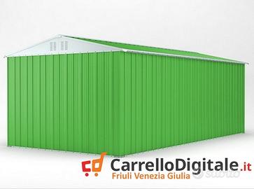 Il box prefabbricato 327 x 611 viene venduto nuovo con garanzia e con fattura o ricevuta fiscale. Viene consegnato all'indirizzo che ci verra' comunicato in kit di montaggio comprensivo di tutta la ferramenta necessaria a montarlo Box garage casetta prefabbricato in lamiera di Acciaio Zincata grecata NUOVO, perfetto per il giardino usato come capanno per ricovero rimessa attrezzi o come riparo per auto moto, baracca da cantiere o box attrezzi. SPEDIZIONE IN TUTTA ITALIA INCLUSA NEL PREZZO * Dimensioni esterne (incluso tetto): 3.27 m (Larghezza) x 6.11 m (Lunghezza) x 2,35 m (Altezza) * Dimensioni esterne (solo perimetro): 3.07 m (Larghezza) x 6.11 m (Lunghezza) x 2,35 m (Altezza) * Dimensioni interne: 3.03 m (Larghezza) x 6.07 m (Lunghezza) x 2,30 m (Altezza) * Altezza della parete: 2.00 m * altezza Colmo: 2.35 m * Metri Quadri: 19.98 mq * Rinforzo rigido: 40 mm x 60 mm , spessore 1,0 mm in acciaio zincato tubi telaio scatolato * Dimensioni porta principale anteriore: 2.24 m (Larghezza) x 1,95 m (Altezza) (2 porte) * Dimensioni della porta laterale: 0.74 m (Larghezza) x 1,95 m (Altezza) (1 porta) * Peso struttura: 346 KG Ca. * Spessore pannelli: 0,40 mm * Spessore profili: 0,70 mm Telefono/Whatsapp: A soli 1488 euro IVA, spedizione ed assicurazione sulla spedizione inclusi nel prezzo Possibilita' di acquisto con pagamento alla consegna (SOLO CONTANTI no assegni) Attenzione, il metallo utilizzato non e' ferro o alluminio ma acciaio zincato Il box in acciao in questione non e' coibentato (pannelli sandwich) ma puo' essere modificato facilmente e con una spesa minima. La casetta da esterno e' composta da profili e pannelli in acciaio zingato e verniciato in maniera da poter resistere alle intemperie. A differenza di quelli in legno i box in lamiera zincata non necessitano di nessuna manutenzione Telefono/Whatsapp: