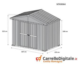 * Dimensioni esterne (incluso tetto): 3.27 m (Larghezza) x 1.55 m (Lunghezza) x