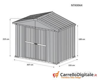 * Dimensioni esterne (incluso tetto): 3.27 m (Larghezza) x 1.55 m (Lunghezza) x