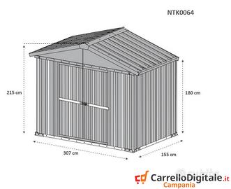 * Dimensioni esterne (incluso tetto): 3.27 m (Larghezza) x 1.55 m (Lunghezza) x