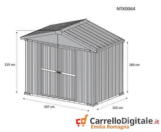 * Dimensioni esterne (incluso tetto): 3.27 m (Larghezza) x 1.55 m (Lunghezza) x