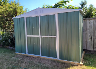 Box garage casetta prefabbricato in lamiera di Acciaio Zincata grecata con Porta NUOVO, perfetto per il giardino usato come capanno per ricovero rimessa attrezzi.