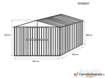 Il capanno in acciaio 360 x 345 viene venduto nuovo con garanzia e con fattura o ricevuta fiscale. Viene consegnato all'indirizzo che ci verra' comunicato in kit di montaggio comprensivo di tutta la ferramenta necessaria a montarlo. Casetta in lamiera zincata, prefabbricato in acciaio, capanno da giardino cortile o cantiere con Portone a doppia anta. Interno spazioso per riporre tutti gli attrezzi e organizzare meglio il proprio spazio. * SPEDIZIONE IN TUTTA ITALIA INCLUSA NEL PREZZO * Dimensioni esterne (incluso tetto): 3.60 m (Larghezza) x 3.45 m (Lunghezza) x 2.12 m (Altezza) * Dimensioni esterne (solo perimetro): 3.45 m (Larghezza) x 3.45 m (Lunghezza) x 2.12 m (Altezza) * Dimensioni interne: 3.40 m (Larghezza) x 3.40 m (Lunghezza) x 2.10 m (Altezza) * Altezza della parete: 1.80 m * altezza Colmo: 2.12 m * Metri Quadri: 12.42 mq * Peso struttura: 150 kg * Dimensioni porta anteriore: 1.66 m (Larghezza) x 1,75 m (Altezza) (2 porte) * Spessore pannelli: 0,32 mm * Spessore profili: 0,70 mm Telefono/Whatsapp: A soli 694 euro IVA, spedizione ed assicurazione sulla spedizione inclusi nel prezzo. Possibilita' di acquisto con pagamento alla consegna ( SOLO CONTANTI) Attenzione, il metallo utilizzato per il box non e' ferro o alluminio ma acciaio zincato. Il container in questione non e' coibentato ( pannelli sandwich ) ma puo' essere modificato facilmente e con una spesa minima. Il box garage per giardino e' composto da profili e pannelli in acciaio zingato e verniciato in maniera da poter resistere alle intemperie. La casetta rimessa per esterno in lamiera zincata non necessita di nessuna manutenzione Telefono/Whatsapp: