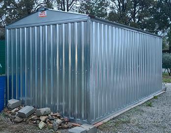 vendo box in alluminio zincato, misure 2,60 × 5,00 .... rinforzato con scatolato in ferro 3×3 realizzato da fabbro esperto.... impianto luce nuovo.. come nuovo, ideale per ricovero attrezzi da giardino o per edilizia ... prima di trattare o offerte ridicole consiglio di venire a vederlo...no perditempo!!!... semplice da montare con viti e bulloni tutti rinforzati... serratura con chiave e passante ... perno ferma porta antivento... no ruggine ... ganci interni molto robusti per carico pesante... consegna a mano ..ingombro smontato 2 50×2,00×0,50.