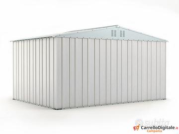 Box casetta 4.03 x 2.69 capanno in lamiera zincata da giardino o cantiere facile da montare grazie al manuale e il kit di montaggio comprensivo di tutta la ferramenta. Casetta per attrezzi, prefabbricato in lamiera di Acciaio Zincata grecata perfetto per il giardino usato come capanno per ricovero rimessa attrezzi da giardinaggio o come riparo per bici e frese. SPEDIZIONE IN TUTTA ITALIA INCLUSA NEL PREZZO * Dimensioni esterne (incluso tetto): 4.03 m (Larghezza) x 2.69 m (Lunghezza) x 2.15 m (Altezza) * Dimensioni esterne (solo perimetro): 3.83 m (Larghezza) x 2.69 m (Lunghezza) x 2.15 m (Altezza Max) * Dimensioni interne: 3.79 m (Larghezza) x 2.65 m (Lunghezza) x 2.10 m (Altezza Max) * Altezza della parete: 1.80 m, altezza colmo 2.15 m * Metri Quadri: 10.84 mq * Dimensioni porta anteriore: 2 ante per un totale di 1.48 m (Larghezza) x 1,75 m (Altezza) * Peso struttura: 150 KG Ca * Spessore pannelli: 0,32 mm * Spessore profili: 0,70 mm Telefono/Whatsapp: * soli 626 euro IVA, spedizione ed assicurazione sulla spedizione inclusi nel prezzo Possibilita' di acquisto con pagamento alla consegna (SOLO CONTANTI no assegni) Attenzione, il metallo utilizzato non e' ferro o alluminio ma acciaio zincato. Il box in acciao in questione non e' coibentato (pannelli sandwich) ma puo' essere modificato facilmente e con una spesa minima. La casetta da esterno e' composta da profili e pannelli in acciaio zingato e verniciato in maniera da poter resistere alle intemperie. A differenza di quelli in legno i box in lamiera zincata non necessitano di nessuna manutenzione Telefono/Whatsapp: