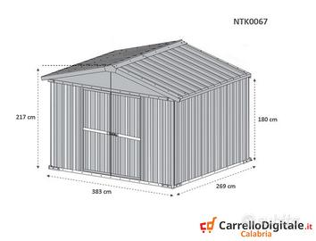 Box casetta 4.03 x 2.69 capanno in lamiera zincata da giardino o cantiere facile da montare grazie al manuale e il kit di montaggio comprensivo di tutta la ferramenta. Casetta per attrezzi, prefabbricato in lamiera di Acciaio Zincata grecata perfetto per il giardino usato come capanno per ricovero rimessa attrezzi da giardinaggio o come riparo per bici e frese. SPEDIZIONE IN TUTTA ITALIA INCLUSA NEL PREZZO * Dimensioni esterne (incluso tetto): 4.03 m (Larghezza) x 2.69 m (Lunghezza) x 2.15 m (Altezza) * Dimensioni esterne (solo perimetro): 3.83 m (Larghezza) x 2.69 m (Lunghezza) x 2.15 m (Altezza Max) * Dimensioni interne: 3.79 m (Larghezza) x 2.65 m (Lunghezza) x 2.10 m (Altezza Max) * Altezza della parete: 1.80 m, altezza colmo 2.15 m * Metri Quadri: 10.84 mq * Dimensioni porta anteriore: 2 ante per un totale di 1.48 m (Larghezza) x 1,75 m (Altezza) * Peso struttura: 150 KG Ca * Spessore pannelli: 0,32 mm * Spessore profili: 0,70 mm Telefono/Whatsapp: * soli 662 euro IVA, spedizione ed assicurazione sulla spedizione inclusi nel prezzo Possibilita' di acquisto con pagamento alla consegna (SOLO CONTANTI no assegni) Attenzione, il metallo utilizzato non e' ferro o alluminio ma acciaio zincato. Il box in acciao in questione non e' coibentato (pannelli sandwich) ma puo' essere modificato facilmente e con una spesa minima. La casetta da esterno e' composta da profili e pannelli in acciaio zingato e verniciato in maniera da poter resistere alle intemperie. A differenza di quelli in legno i box in lamiera zincata non necessitano di nessuna manutenzione Telefono/Whatsapp: