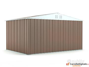 Box casetta 4.03 x 2.69 capanno in lamiera zincata da giardino o cantiere facile da montare grazie al manuale e il kit di montaggio comprensivo di tutta la ferramenta. Casetta per attrezzi, prefabbricato in lamiera di Acciaio Zincata grecata perfetto per il giardino usato come capanno per ricovero rimessa attrezzi da giardinaggio o come riparo per bici e frese. SPEDIZIONE IN TUTTA ITALIA INCLUSA NEL PREZZO * Dimensioni esterne (incluso tetto): 4.03 m (Larghezza) x 2.69 m (Lunghezza) x 2.15 m (Altezza) * Dimensioni esterne (solo perimetro): 3.83 m (Larghezza) x 2.69 m (Lunghezza) x 2.15 m (Altezza Max) * Dimensioni interne: 3.79 m (Larghezza) x 2.65 m (Lunghezza) x 2.10 m (Altezza Max) * Altezza della parete: 1.80 m, altezza colmo 2.15 m * Metri Quadri: 10.84 mq * Dimensioni porta anteriore: 2 ante per un totale di 1.48 m (Larghezza) x 1,75 m (Altezza) * Peso struttura: 150 KG Ca * Spessore pannelli: 0,32 mm * Spessore profili: 0,70 mm Telefono/Whatsapp: * A soli 662 euro IVA, spedizione ed assicurazione sulla spedizione inclusi nel prezzo Possibilita' di acquisto con pagamento alla consegna (SOLO CONTANTI no assegni) Attenzione, il metallo utilizzato non e' ferro o alluminio ma acciaio zincato. Il box in acciao in questione non e' coibentato (pannelli sandwich) ma puo' essere modificato facilmente e con una spesa minima. La casetta da esterno e' composta da profili e pannelli in acciaio zingato e verniciato in maniera da poter resistere alle intemperie. A differenza di quelli in legno i box in lamiera zincata non necessitano di nessuna manutenzione Telefono/Whatsapp: