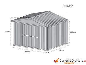 Box casetta 4.03 x 2.69 capanno in lamiera zincata da giardino o cantiere facile