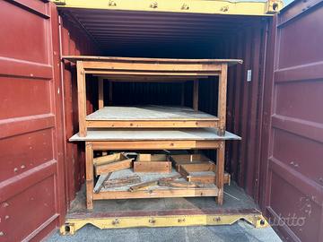 box officina completo di 2 banconi in ferro/alluminio e 2 banconi in legno
