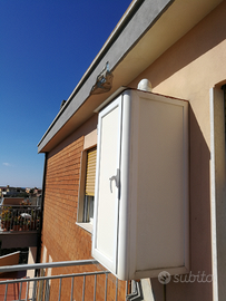 Vendo box per caldaia in alluminio anodizzato (non lamierino sottile..). Provvisto di maniglia Savio con serratura. Vendo già smontato per motivi di spazio, ma facile da riassemblare. Misura in cm 135Hx0,54Lx0,50P.