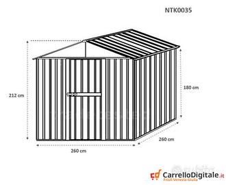 * Dimensioni esterne (incluso tetto): 2.76 m (Larghezza) x 2.60 m (Lunghezza) x