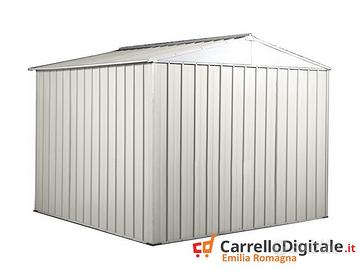 Il capanno e' composto da profili e pannelli in acciaio zingato e verniciato in