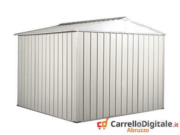 Il capanno e' composto da profili e pannelli in acciaio zingato e verniciato in