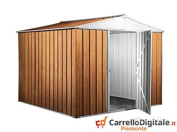 Il capanno e' composto da profili e pannelli in acciaio zingato e verniciato in