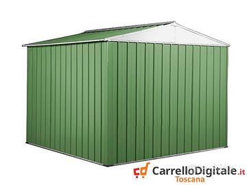 Capanno da giardino 276 x 260, casetta attrezzi, baracca in lamiera di acciaio zincata, assolutamente nuovo con garanzia e completo di manuale e kit di montaggio Casetta per attrezzi, utensili, bici e moto, o rimessa per conservare la legna. Box in acciaio utile per organizzare lo spazio esterno in un giardino, un cortile, garage o terrazzo SPEDIZIONE IN TUTTA ITALIA INCLUSA NEL PREZZO * Dimensioni esterne (incluso tetto): 2.76 m (Larghezza) x 2.60 m (Lunghezza) x 2.12 m (Altezza) * Dimensioni esterne (solo perimetro): 2.60 m (Larghezza) x 2.60 m (Lunghezza) x 2.12 m (Altezza) * Dimensioni interne: 2.55 m (Larghezza) x 2.55 m (Lunghezza) x 2.10 m (Altezza) * Altezza della parete: 1.80 m * altezza Colmo: 2.12 m * Metri Quadri: 7.2 * Peso struttura: 110 kg * Dimensioni porta anteriore: 0.83 m (Larghezza) x 1,78 m (Altezza) * Spessore pannelli: 0,32 mm * Spessore profili: 0,70 mm Telefono/Whatsapp: A soli 494 euro IVA, spedizione ed assicurazione sulla spedizione inclusi nel prezzo Possibilita' di acquisto con pagamento alla consegna (SOLO CONTANTI) Attenzione, il metallo utilizzato non e' ferro o alluminio ma acciaio zincato. Il prefabbricato da giardino in lamiera non e' coibentato (pannelli sandwich) ma puo' essere modificato facilmente e con una spesa minima Il capanno e' composto da profili e pannelli in acciaio zingato e verniciato in maniera da poter resistere alle intemperie Telefono/Whatsapp: