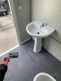 All'interno, due cabinette bagno complete di sanitari (lavabo e vaso)