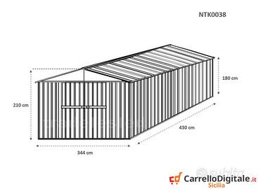 Box garage cantiere 360 x 430 in lamiera zincata, capanno casa da riporre all'esterno e utilizzare come ricovero rimessa attrezzi in giardino o come riparo per auto moto, barca Il capanno in acciaio componibile viene consegnato all'indirizzo che ci verra' comunicato in kit di montaggio comprensivo di tutta la ferramenta necessaria a montarlo SPEDIZIONE INCLUSA NEL PREZZO * Dimensioni esterne (incluso tetto): 3.60 m (Larghezza) x 4.30 m (Lunghezza) x 2,10 m (Altezza) * Dimensioni esterne (solo perimetro): 3.44 m (Larghezza) x 4.30 m (Lunghezza) x 2,10 m (Altezza) * Dimensioni interne: 3.40 m (Larghezza) x 4.25 m (Lunghezza) x 2,10 m (Altezza) * Altezza della parete: 1,80 m * altezza Colmo: 2.10 m * Rinforzo rigido: 40 mm x 60 mm , spessore 1,2 mm in acciaio zincato tubi telaio scatolato. * Dimensioni porta principale anteriore: 1.66 m (Larghezza) x 1,75 m (Altezza) (2 porte) * Dimensioni della porta laterale: 0.83 m (Larghezza) x 1,75 m (Altezza) (1 porta) * Metri Quadri: 15.48 mq * Peso struttura: 185 kg * Spessore pannelli: 0,32 mm * * Spessore profili: 0,70 mm Telefono/Whatsapp: A soli 912 euro IVA, spedizione ed assicurazione sulla spedizione inclusi nel prezzo Possibilita' di acquisto con pagamento alla consegna (SOLO CONTANTI - no assegni) La casetta rimessa in lamiera non e' coibentata (pannelli sandwich) ma puo' essere modificata facilmente e con una spesa minima Il garage e' composto da profili e pannelli in acciaio zingato e verniciato in maniera da poter resistere alle intemperie Telefono/Whatsapp: