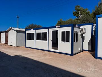 Box coibentato prefabbricato uso ufficio personalizzato con finestre scorrevoli. Dimensioni 7 x 2,40 metri.