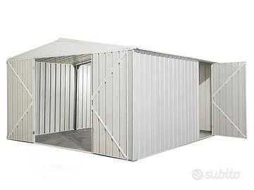 Box garage cantiere 360 x 430 in lamiera zincata, capanno casa da riporre all'esterno e utilizzare come ricovero rimessa attrezzi in giardino o come riparo per auto moto, barca.