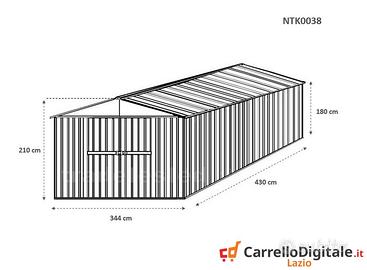 Box garage cantiere 360 x 430 in lamiera zincata, capanno casa da riporre all'esterno e utilizzare come ricovero rimessa attrezzi in giardino o come riparo per auto moto, barca Il capanno in acciaio componibile viene consegnato all'indirizzo che ci verra' comunicato in kit di montaggio comprensivo di tutta la ferramenta necessaria a montarlo SPEDIZIONE INCLUSA NEL PREZZO * Dimensioni esterne (incluso tetto): 3.60 m (Larghezza) x 4.30 m (Lunghezza) x 2,10 m (Altezza) * Dimensioni esterne (solo perimetro): 3.44 m (Larghezza) x 4.30 m (Lunghezza) x 2,10 m (Altezza) * Dimensioni interne: 3.40 m (Larghezza) x 4.25 m (Lunghezza) x 2,10 m (Altezza) * Altezza della parete: 1,80 m * altezza Colmo: 2.10 m * Rinforzo rigido: 40 mm x 60 mm , spessore 1,2 mm in acciaio zincato tubi telaio scatolato. * Dimensioni porta principale anteriore: 1.66 m (Larghezza) x 1,75 m (Altezza) (2 porte) * Dimensioni della porta laterale: 0.83 m (Larghezza) x 1,75 m (Altezza) (1 porta) * Metri Quadri: 15.48 mq * Peso struttura: 185 kg * Spessore pannelli: 0,32 mm * * Spessore profili: 0,70 mm Telefono/Whatsapp: A soli 860 euro IVA, spedizione ed assicurazione sulla spedizione inclusi nel prezzo Possibilita' di acquisto con pagamento alla consegna (SOLO CONTANTI - no assegni) La casetta rimessa in lamiera non e' coibentata (pannelli sandwich) ma puo' essere modificata facilmente e con una spesa minima Il garage e' composto da profili e pannelli in acciaio zingato e verniciato in maniera da poter resistere alle intemperie Telefono/Whatsapp:
