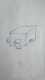 Vendo box prefabbricato come da foto. Misure 260x275x320 cm Già smontato e pronto per il ritiro, scaffalatura interna non compresa. Prezzo leggermente trattabile.