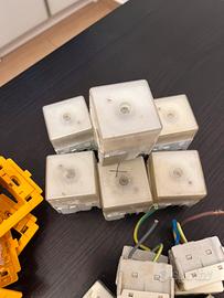 • 27 placche 3moduli 3 posti • 6 placche 3 moduli 1 posto • 21 placche 4 moduli 4 posti • 34 supporti 3 posti gw23202 • 20 supporti 4 posti gw24202 • 55 copriforo gw20056 • 7 luci emergenza gw2700 • 25 deviatori gw20571 • 5 invertitori gw20009 • 14 pulsanti gw20010 •45 prese bivalenti 10 A gw20201 •2 presa tv induttiva passante 10 db •1 presa tv induttiva passante 6db •7 regolatori dimmer gw 20803