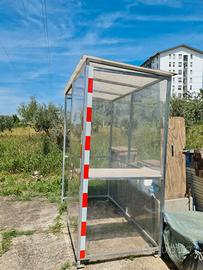 E' rivestito da pannelli di policarbonato, ma si possono smontare e montare ad esempio delle reti, per farlo diventare una gabbia.