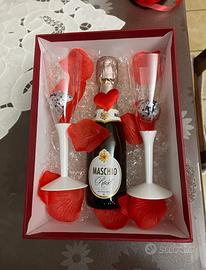 box con mini spumante ,due calici e due baci perugina
