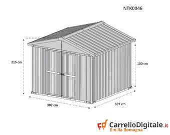 * Dimensioni esterne (incluso tetto): 3.27 m (Larghezza) x 3.07 m (Lunghezza) x