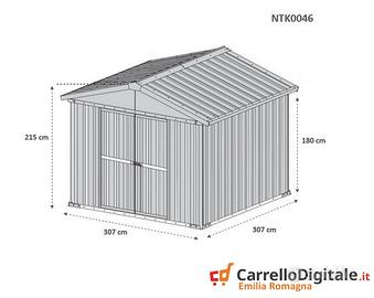 * Dimensioni esterne (incluso tetto): 3.27 m (Larghezza) x 3.07 m (Lunghezza) x