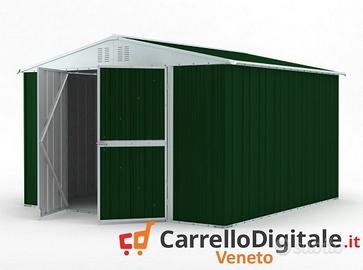 Il box prefabbricato 327 x 307 viene venduto nuovo con garanzia e con fattura o ricevuta fiscale. Viene consegnato all'indirizzo che ci verra' comunicato in kit di montaggio comprensivo di tutta la ferramenta necessaria a montarlo Box garage casetta prefabbricato in lamiera di Acciaio Zincata grecata con Saracinesca NUOVO, perfetto per il giardino usato come capanno per ricovero rimessa attrezzi o come riparo per auto moto, baracca da cantiere o box attrezzi. SPEDIZIONE INCLUSA NEL PREZZO * Dimensioni esterne (incluso tetto): 3.27 m (Larghezza) x 3.07 m (Lunghezza) x 2.15 m (Altezza) * Dimensioni esterne (solo perimetro): 3.07 m (Larghezza) x 3.07 m (Lunghezza) x 2.15 m (Altezza) * Dimensioni interne: 3.03 m (Larghezza) x 3.03 m (Lunghezza) x 2.10 m (Altezza) * Altezza della parete: 1.80 m * altezza Colmo: 2.15 m * Dimensioni porta anteriore: 1.48 m (Larghezza) x 1,75 m (Altezza) (2 porte) * Peso struttura: 145 KG Ca. * Metri quadri: 10.04 * Spessore pannelli: 0,32 mm * Spessore profili: 0,70 mm Telefono/Whatsapp: A soli 585 euro IVA, spedizione ed assicurazione sulla spedizione inclusi nel prezzo Possibilita' di acquisto con pagamento alla consegna (SOLO CONTANTI no assegni) Attenzione, il metallo utilizzato non e' ferro o alluminio ma acciaio zincato. Il box in acciao in questione non e' coibentato (pannelli sandwich) ma puo' essere modificato facilmente e con una spesa minima. La casetta da esterno e' composta da profili e pannelli in acciaio zingato e verniciato in maniera da poter resistere alle intemperie. A differenza di quelli in legno i box in lamiera zincata non necessitano di nessuna manutenzione Telefono/Whatsapp: