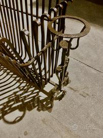 Grande bracere vecchio di circa 100 anni tutto in ferro battuto a mano, pezzo molto raro in perfetto stato di conservazione ideale per grandi camini per fare la brace