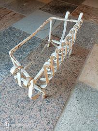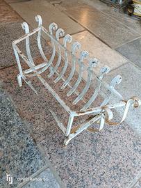 Braciere resistente in ferro, strumento molto solido, comodo per bruciare legna in un barbeque o in un caminetto. Laccato in bianco perché è stato usato anche come fioriera. MISURE: 68cm di lunghezza, 26cm di profondità e 36cm di altezza