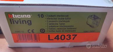 Vendo doppio pulsante LivingLight L 4037 originale Nuovo, Antracite interbloccato con frecce. Pulsante doppio (1P/NO)+(1P/NO) interbloccato 10A 250V a.c. . Adatto per la salita e la discesa di tapparelle e serrande, con interblocco, evita di premere due pulsanti contemporaneamente. Ne ho 10 pezzi sono Nuovi mai usati, prezzo riferito al singolo pezzo.
