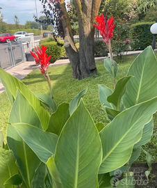 Bulbi rizomi di canna indica gigante “ Robert Kempt” gonfio, rosso scarlatto a forma di pannocchia, fioriscono tutta estate, ideali per bordure o siepi