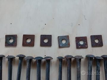 Set di bulloni a testa tonda con quadro. - diametro 10mm - 12 bulloni a testa tonda. - 12 quadretti. - Materiale metallico.