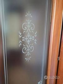 Per cambio disposizione arredamento, vendo bussola interna in legno color ciliegio, con vetro satinato raffigurante giglio fiorentino, completa di cornici coprifilo, la porta è perfetta non presenta alcun difetto, le misure sono : h 210, L 0,90, Spess 12 cm la luce netta è di 83 cm. Il valore commerciale della porta è di 550 euro Vendo per immediato realizzo solo a euro 200