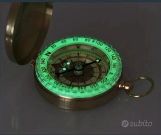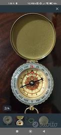 Bussola tascabile vintage in ottone , impermeabile e dotata di un coperchio a scatto.