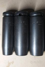 Vendo BUSSOLE PER AVVITATORE A IMPULSI SERIE LUNGA misure 13, 16, 17, 19, 22 attacco quadro da 1/2 pollice insieme anche uno snodo sferico serie impact da 1/2 pollice modello 510 Marca STAHLWILLWE tedesca.