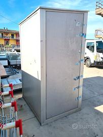 cabina isotermica in alluminio usata, si tratta di una celletta in pannelli coibentati adatta come magazzino di consegna per prodotti freschi come: latte, yogurt, panna, etc. è da riparare perciò la vendiamo a buon prezzo nelle condizioni in cui si trova.