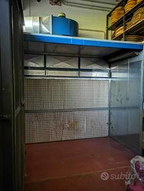 cabina a secco misura cm 300 x 150 x 250h compresa di quadro elettrico, lampade, motore d'aspirazione e camino di estrazione ( smontaggio cabina e camino a cura del compratore ) usata pochissimo, ottime condizioni