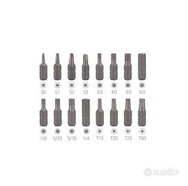 Set da 58 pezzi di punte da cacciavite di precisione per stringere o allentare facilmente viti; include una vasta scelta di punte speciali. La varietà di punte incluse nel set è impressionante, coprendo una vasta gamma di dimensioni e tipologie. Ogni punta è costruita con materiali di alta qualità, garantendo robustezza e durabilità nel tempo. La precisione di queste punte è notevole, consente di affrontare con facilità lavori che richiedono attenzione ai dettagli. Tipi di Testine: Phillips, piatto, esagonale, Torx, Quadrato, Triangolare, Pentalobe, Tri-Point, Chiave, Tri-Wing