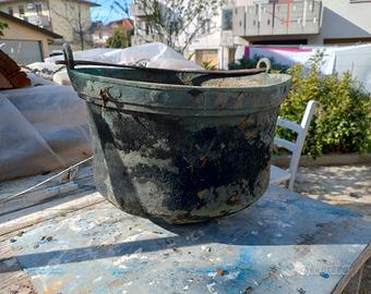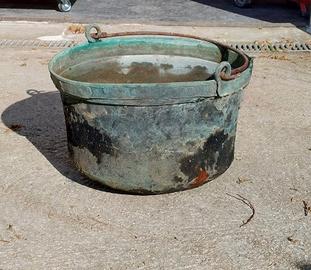 calderone in rame, completamente da restaurare dimensione diametro 40 cm, profondità 22 cm, la struttura è in buona condizione