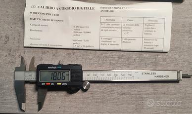 Calibro a corsoio digitale compresa batteria. Campo di misura 0-150mm/Risoluzione 0.01 mm/Precisione 0.02mm / pila LR44. Vendo per inutilizzo.